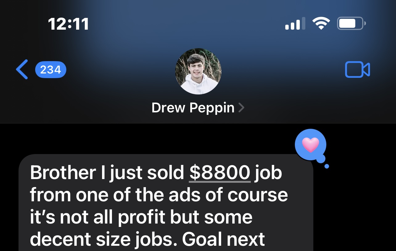 Drew is 21 and owns a landscaping company, we helped him recently cross $50k/month in revenue.