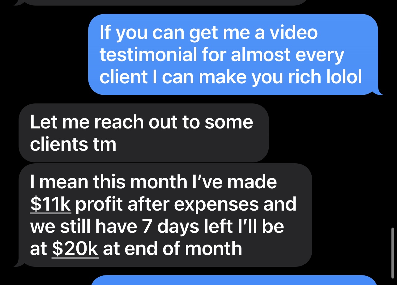 Luke added an extra $20,000 in profit for the month attributed directly from our ads campaigns.
